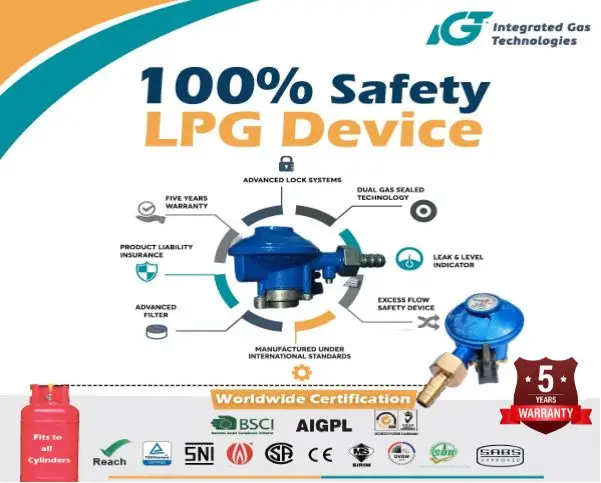 উন্নত প্রযুক্তিতে তৈরি IGT SAFETY REGULATOR দিচ্ছে ১০০ ভাগ সুরক্ষা যেকোনো সিলিন্ডারজনিত দুর্ঘটনা থেকে। এতে আছে অত্যাধুনিক ফিচার এডভান্স লক সিস্টেম , যেটা দ্বারা চুলা হতে লিক, পাইপ ফেটে যাওয়া, পাইপ ছিদ্র হওয়া, চুলা ও পাইপের লুজ কানেকশন, চুলার বার্নারের মরিচিকার ছিদ্রের কারণে গ্যাস বের হলে সাথে সাথে গ্যাস সরবরাহ বন্ধ করে দিবে। অর্থাৎ যে কোন লিকেজ বা সিলিন্ডারে দুর্ঘটনার সম্ভাবনা দেখা দিলে গ্যাস সাপ্লাই বন্ধ করে দিয়ে সিলিন্ডার লক করে দিবে। এছাড়াও বেশীরভাগ সিলিন্ডার বিস্ফোরণ ঘটে গ্যাসের প্রেশার যখন মাত্রা অতিক্রম করে তাই রেগুলেটরে রয়েছে Excess Flow Valve System (EFV) যা গ্যাসের প্রেশার সঠিক মাত্রায় নিয়ন্ত্রন করে (Automatic) স্বয়ংক্রিয়ভাবে সিলিন্ডারের দুর্ঘটনা রোধ করে।